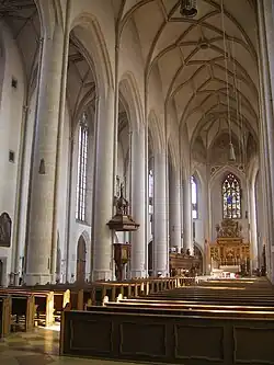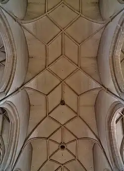 Die Mittelschiffsgewölbe sind übertönt durch das Rippengeflecht (Netzgewölbe) insgesamt Stichkappentonnen. Da sie vollständig oberhalb der Scheitel der Arkaden zwischen Mittelschiff und Seitenschiffen liegen, kann diese Kirche als Pseudobasilika gerechnet werden. Andererseits ragen auch die Seitenschiffsgewölbe höher als die Arkaden.