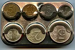 Meist sind je Münzsorte zwei Hebel betätigbar: der eine liefert eine Münze, der andere zwei gleiche Münzen.