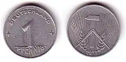 In den Jahren 1947/1948 prägte die Münzstätte der Sowjetischen Besatzungszone Deutschlands die heute seltenen Zink-Kleingeldmünzen mit der Umschrift Deutsches Reich.