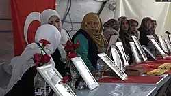 Die Mütter von Diyarbakır (türkisch Diyarbakır Anneleri) sind eine Gruppe von Frauen, die sich wöchentlich in Diyarbakır zu einem Sitzstreik gegen die Halkların Demokratik Partisi (HDP) versammelt. Sie werfen der Arbeiterpartei Kurdistans (PKK) vor, ihre Kinder getäuscht oder entführt zu haben und fordern ihre Rückkehr.[1][2] Das Sit-In findet vor der örtlichen Geschäftsstelle der HDP statt.[3]