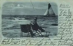 - ↑ a b Vergleiche etwa die postalische Datierung von 1901 auf der Adressseite der mit der Nummer 377 als Mondscheinkarte fortlaufend nummerierten Ansichtskarte aus dem Hamburger Verlag. Eine fotografische Ansichtskarte mit der Lübecker Synagoge, Nr. 3252, abgestempelt am 10. Juni 1900, in vintage-germany.de.