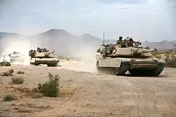 Der M1 Abrams ist ein Kampfpanzer (englisch main battle tank, MBT) der United States Army und bis Mai 2021[1] des United States Marine Corps. Er bildet das Rückgrat der Panzertruppen der USA, Ägyptens, Saudi-Arabiens, Kuwaits und Australiens. Die ersten Serienmodelle wurden Anfang 1980 ausgeliefert. Er ersetzte den veralteten M60. Er kostete 1999 etwa 6,2 Millionen US-Dollar pro Stück.[2] In den USA und Ägypten wurden über 9000 Exemplare gebaut.[3] Mehrere Kampfwertsteigerungen waren möglich. Er wurde nach General Creighton W. Abrams benannt, der von Oktober 1972 bis zu seinem plötzlichen Tod im September 1974 Chief of Staff of the Army war.