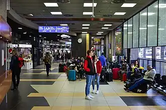 Es gibt zwei Wartehallen. Die größere ist tagsüber von 6 Uhr bis 22 Uhr geöffnet. Die kleinere ist durchgängig für Passagiere geöffnet. Beide Ebenen sind mit Aufzügen, Rolltreppen und Treppen verbunden.