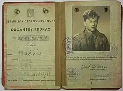- ↑ MAŠÍN Josef, ausführlicher Lebenslauf in: Vojenské osobnosti československého odboje 1939–1945, Veröffentlichung des Historischen Militärinstituts des Verteidigungsministeriums der Tschechischen Republik, AVIS, Prag 2005, S. 191, online (archiviert) auf: vojenskaakademiehranice.ic.cz/...