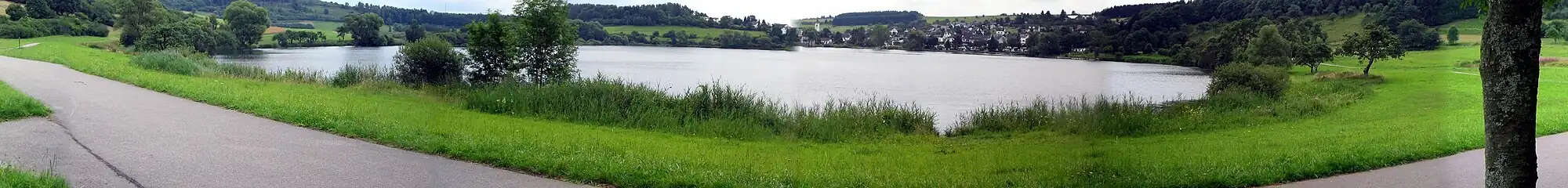 Nahe Gillenfeld liegt das Pulvermaar; es ist nach dem Bodensee und den Voralpenseen der tiefste natürliche See Deutschlands.