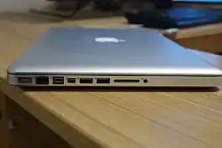 Der bislang übliche PC-Card- oder PCMCIA-Schacht wurde mit dem MBP auf den ExpressCard/34-Schacht umgestellt. Vorhanden sind darüber hinaus Bluetooth 2.1, Wi-Fi 4, eine Festplatte mit Sudden Motion Sensor (Bewegungssensor) und ein Infrarot-Sensor für die Fernbedienung Apple Remote. Der DVD-Brenner besaß im 15,4″-Modell keine Double-Layer-Fähigkeit (nur bei den 17-Zöllern) und nur vierfache Brenngeschwindigkeit.