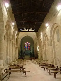 - Die romanische Kirche Saint-Étienne ist – trotz ihres auf den ersten Blick unspektakulären Äußeren – die bedeutendste Sehenswürdigkeit des Ortes. Die Westfassade ist weitgehend ungegliedert und schmucklos; das Portalgewände hat vier eingestellte Säulchen und einen gezackten Bogen, ein Dekorelement, welches sich im Bogenlauf des Westfensters wiederholt. Unterhalb des Giebelfeldes findet sich ein einfacher Konsolenfries. Das Portal auf der Nordseite ist dagegen entschieden reicher geschmückt: Drei Säulen auf jeder Seite tragen die Archivolten, die mit abstrakt-vegetabilischen Motiven verziert sind; der äußere Bogenlauf zeigt diverse Fabeltiere mit einem Agnus Dei in der Mitte, dem ein Engel mit einem Weihrauchbecken seine Achtung erweist. Der abschließende Konsolenfries zeigt tierische und menschliche Figuren sowie Monstren, die im Begriff sind, Menschen zu verschlingen. Im Gegensatz zur südlichen Außenwand ist die der Nordseite durch große Blendbögen gegliedert; der Turm hat eine seitliche Wendeltreppe (vis), ist aber im oberen Teil unvollendet geblieben. Das einschiffige Innere der Kirche überrascht durch eine reiche Wandgliederung aus doppelten Blendbögen und Halbsäulenvorlagen mit schönem Kapitellschmuck, der vorwiegend aus Ranken- und Blattwerk besteht, aber auch einige figürliche Motive sind zu erkennen. Vierung, Querhaus und spätgotischer Flachchor haben steinerne Gewölbe anstelle des hölzernen Dachstuhls im Langhaus. Die Kirche wurde im Jahre 1931 als Monument historique[1] klassifiziert.