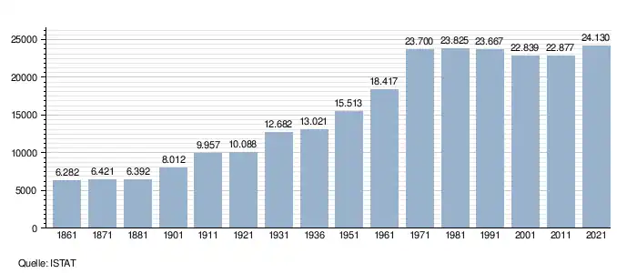 - ↑ Bilancio demografico e popolazione residente per sesso al 31 dicembre 2024. ISTAT. (Bevölkerungsstatistiken des Istituto Nazionale di Statistica, Stand 31. Dezember 2024).