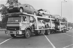 Mittelschwerer Magirus-Deutz Autotransporter mit Iveco-Fahrerhaus in den Niederlanden