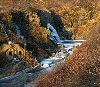 ![]() Der Magnúsarfoss mit rekonstruiertem Kraftwerk | ||