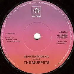 1977 erschien international das Album The Muppet Show, das den Titel Mahna Mahna enthielt, nebst einer ausgekoppelten Single Mah na Mah na.[32] Die ursprüngliche Fassung von Piero Umiliani wurde in Großbritannien ein Hit und errang im Mai 1977 Platz 8 der Hitparade.[33] Die LP mit der Muppet-Version des Songs landete am 25. Juni 1977 auf Platz 1 der britischen Charts und löste damit das Beatles-Album Live at the Hollywood Bowl ab.[34]