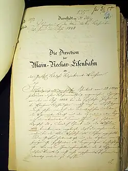 - ↑ § 1 Organisation des Dienstes der Main-Neckar-Bahn (Scheyrer, S. 136).