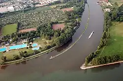 Nördlich der Mainspitze, durch den Main getrennt, befinden sich die Halbinsel Maaraue mit Mainz-Kostheim (einem der sogenannten AKK-Vororte der hessischen Landeshauptstadt Wiesbaden) und Hochheim am Main (Main-Taunus-Kreis), westlich des Rheins der Rand der Mainzer Altstadt und der Stadtteil Weisenau.
