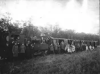 - ↑ Festungsbahn mit der 1910 ausgelieferten Hartmann-Brigadelokokmotive HFB 1 in Ebersheim.
