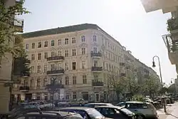 Prägend ist das Baudenkmal an der Mainzer Straße 19 Ecke Scharnweberstraße 33. Es wurde von dem Zimmermeister und Bauherrn Anton Puzowski 1896/1897 nach dem Entwurf von Otto Roeder errichtet. Die Fassade erinnert an die Neorenaissance und den Neobarock und besitzt aufwendig gestaltete Gesimse und Fensterverdachungen. Hervorzuheben sind auch die schmiedeeisernen Korbgitterbalkone.[2]
