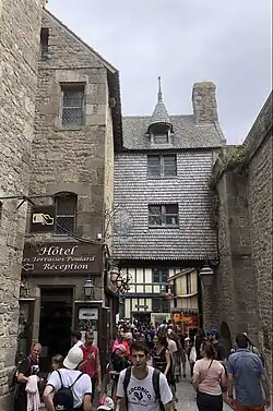 Das Haus befindet sich im südöstlichen Teil der Insel Mont Saint-Michel und überspannt die Hauptstraße Grand Rue. Nördlich grenzt das Hotel de la Licorne an.
