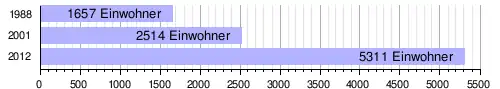 Im Hauptort lebten bei der Volkszählung 2012 5311 Einwohner in 840 Haushalten,[1] bei der Volkszählung 2001 2514 in 267 Haushalten[16] und bei der Volkszählung 1988 1657 in 249 Haushalten.[17]