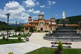 Blick auf die mazedonisch-orthodoxe Kirche Mariä Himmelfahrt am Hauptplatz (2013) | |||||