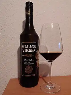 Insgesamt gibt es 16 verschiedene Weintypen zwischen trocken und süß und einem Alkoholgehalt von 15 bis 22 Prozent, darunter Dulce Color, Moscatel, Moscatel natural und Lágrima. Nicht alle Weine werden durch Aufspriten gesüßt, manche werden durch Zusatz von Arrope, eingekochtem Traubenmost, gesüßt. Daneben wird auch noch vereinzelt die ursprüngliche traditionelle Methode angewandt, bei der die Trauben bis zu 20 Tage lang in der Sonne getrocknet werden, um ihren natürlichen Zuckergehalt zu konzentrieren.[3] Der Weinanbau hat in der Provinz Málaga eine lange Tradition; in der Region La Axarquía wird bereits seit der Zeit der Iberer Wein aus in der Sonne getrockneten Trauben gewonnen. Den Höhepunkt seiner Bekanntheit und Produktion erlebte der Málaga im 19. Jahrhundert.[2]