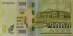 Die aktuelle Banknoten-Serie zu 20, 50, 100, 200, 500 und 1000 Kwacha wurde 2012 ausgegeben. Im November 2016 wurde von der Reserve Bank of Malawi (RBM) eine 2000-Kwacha-Note herausgegeben, um die chronische Geldknappheit einzudämmen.[1] Zuvor war eine Serie mit Werten von 5 bis 500 Kwacha im Umlauf, in der alle Banknoten eine einheitlich gestaltete Vorderseite mit dem Bild von John Chilembwe hatten, die Rückseiten zeigten verschiedene Bauwerke und landestypische Szenen. Die in der ersten Banknoten-Serie von 1971 enthaltenen 50 Tambala und 1 Kwacha wurden 1986 durch Münzen in den gleichen Wertstufen ergänzt; eine 2-Kwacha-Banknote wurde nur bis 1973 ausgegeben. Seit 2006 sind auch Bimetall-Münzen im Wert von 5 und 10 Kwacha im Umlauf.