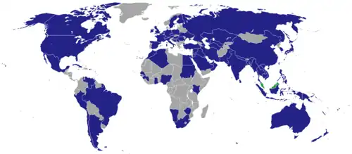 Malaysia entstand 1963 aus vier ehemaligen Teilen des Britischen Weltreichs: der Föderation Malaya, der Kronkolonie Nordborneo, der Kronkolonie Singapur (bis 1965) und der Kolonie Sarawak.[7] Seit der Unabhängigkeit 1957 vom Vereinigten Königreich ist Malaysia Teil des Commonwealth of Nations. Das politische System des Landes basiert auf dem britischen Westminster-System.