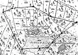 Wie die Karte zeigt, steht der Stein vermutlich noch an der ursprünglichen Stelle. - Stein Nr. 11: gleich vom erstbemelten Eggmarkh hinauf dem Schloß Freyberg zue, so abermaln Freyberg und Eisenberg schaidet