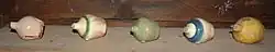 Heute werden statt der keramischen Malhörnchen birnenförmige Geräte aus Gummi verwendet, die eine bessere Kontrolle der ausfließenden Malengobe erlauben.