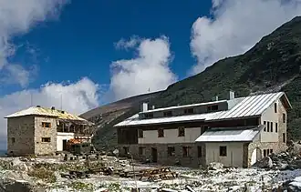 - ↑ Höhenangabe nach einem offiziellen Schild an der alten Hütte