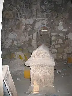 Der Bau mit einem quadratischen Grundriss von etwa sechs mal sechs Meter hat einen zylindrischen Aufsatz, der aus vier Steinlagen besteht, und am oberen Rand ein umlaufendes vorstehendes Gesims mit Höhlung aufweist. Der Zylinder ist nach oben mit einer Kuppel abgeschlossen. Drei Wände des Mausoleums weisen Fenster auf, die nach Nordwesten gerichtete Wand den Eingang. Das Tympanon wird von einem liegenden, unten offenen Dreipass geschmückt, in dessen oberem Kreisbogen sich eine rechteckige Kartusche mit einer Widmung befindet. Die Widmung in arabischer Schrift nennt den Namen des Verstorbenen und seinen Todestag, den 5. Ramaḍān 688 (22. September 1289). Ein großer Entlastungsbogen, dessen Enden auf zwei Konsolen in Höhe der Oberkante der Tür ruhen, ist über dem Eingang angebracht. Die Tür und die Fenster wurden von der Stadtverwaltung 1975 verschlossen, um Obdachlosen den Zugang zu verwehren. Zwei einfache steinerne Bänke, die den Eingang flankierten, sind vor wenigen Jahren entfernt worden. In der Mitte des Innenraums befindet sich ein steinerner Sarkophag. In der nach Mekka gerichteten Wand befindet sich zwischen zwei Fenstern neuerer Zeit ein schlichter Mihrāb, die Fensternischen schließen mit Spitzbögen nach oben ab. Von innen betrachtet zeigt sich, dass der Übergang vom quadratischen Grundriss des Mausoleums zum zylindrischen Aufsatz in zwei Stufen erfolgt, vom Quadrat über ein Oktagon zum Kreis.[8][55]