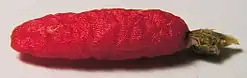 Die cremefarbenen oder rosagelben Blüten sind 1 bis 1,8 Zentimeter lang. Die keuligen bis zylindrisch geformten Früchte sind rot und bis zu 2 Zentimeter lang. Sie enthalten schwarze Samen.