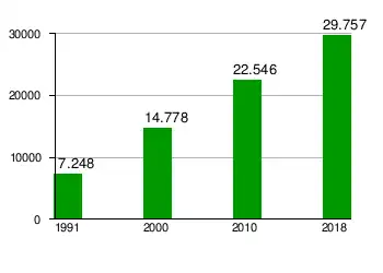 Quelle: IBGE (Angaben für 2018 sind lediglich Schätzungen).[5] 24,79 % der Bevölkerung waren 2010 Kinder und Jugendliche bis 15 Jahre.[6] 58 % lebten 2010 im städtischen und 42 % im weitläufigen ländlichen Raum.