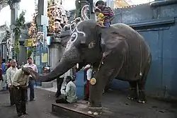 Der Tempelelefant des Manakula-Vinayagar-Tempels, der am Eingang des Tempels stehend die Tempelbesucher gegen eine Geldspende mit seinem Rüssel segnete, war lange Zeit eine bekannte Attraktion für Einwohner Puducherrys wie für Touristen. Die Elefantenkuh Lakshmi war 1995 dem Tempel geschenkt worden. 2022 verstarb sie im Alter von 32 Jahren.[3]