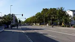 Die Manchinger Straße ist im Stadtgebiet komplett vierspurig ausgebaut mit zum größten Teil separaten Linksabbiegerspuren.