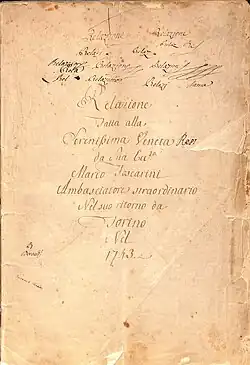 - ↑ Joseph Souchon (Hrsg.): Correspondance diplomatique du Comte de Montaigu, ambassadeur a Venise, 1743-1749, Plon-Nourrit, Paris 1915, S. 23 (Digitalisat, Gallica).