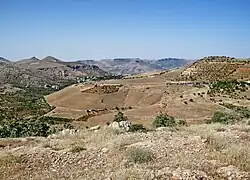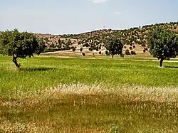 Eines der agrarisch wichtigsten Gebiete sind umliegende Ebenen wie die von Kızıltepe, die 4–5 km südlich von Mardin beginnt. Diese ebenen Flächen bieten rotbraune Böden, die unter Steppenvegetation gebildet wurden, wo semiaride kontinentale Klimabedingungen wirksam sind. Das wichtigste Merkmal dieser steppenartigen Böden ist ihre alkalische Reaktion und die Anreicherung von überschüssigen Basen und Kalk in der Unterbodenschicht, wodurch sie für den Getreideanbau geeignet sind.[50] Diese Steppen liegen in Gebieten des Fruchtbaren Halbmonds, die oftmals als Zentrum für genetische Vielfalt im Nahen Osten beschrieben werden. Wilde Vorfahren vieler Pflanzen, die heute weltweit kultiviert werden, haben sich in diesen Gebieten auf natürliche Weise verbreitet. Avena- (Hafer), Hordeum- (Gerste) und Triticum- (Weizen) Arten sind einige davon. Obwohl mehr als 400 Pflanzenarten in der Steppenflora dort vorkommen, ist dieses Gebiet in Bezug auf Endemismus eine der ärmsten Gegenden der Türkei. Die meisten sind Arten der iranisch-turanischen Florenregion, und die Einschleppungsrate von Pflanzen aus der mediterranen Florenregion ist sehr gering. Auf der anderen Seite fallen einige Pflanzenarten in Bezug auf ihre Artenvielfalt auf. So sind etwa 10 verschiedene Gattungen wie Tragant (Astragalus, Bockdorn), Wolfsmilchgewächse (Euphorbia) und Klee (Trifolium) in diesem Gebiet weit verbreitet.[51]