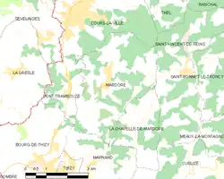 Umgeben wird Mardore von zwei Nachbargemeinden und von drei Communes déléguées von Thizy-les-Bourgs: