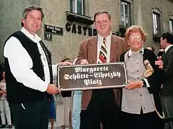 Margarete Schütte-Lihotzky feierte ihren 100. Geburtstag 1997 und tanzte einen kurzen Walzer mit dem Bürgermeister von Wien, Michael Häupl. Sie äußerte bei diesem Anlass: „Ich würde es genossen haben, ein Haus für einen reichen Mann zu entwerfen.“ Im Zuge der Feier erhielt sie den Ehrenring der Stadt Wien. Anlässlich ihres 100. Geburtstages wurde sie von der Stadtgemeinde Radstadt geehrt; seither heißt der Platz vor dem Zeughaus am Turm Margarete-Schütte-Lihotzky-Platz.[21]