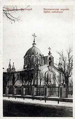 - ↑ a b c Александр Стефанский: История прихода. Некоторые даты истории католического костела в Мариуполе. In: kostel-mari.blogspot.com. 2007, abgerufen am 22. April 2022 (ukrainisch, wichtige Daten aus der Gemeindegeschichte).