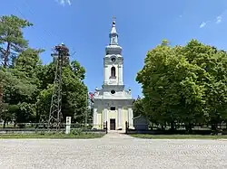 Das Gotteshaus steht im Dorfzentrum an der Straße Ulica Mihajla Pupina. Die genaue Adresse der Kirche lautet Ulica Mihajla Pupina Nr. 57. In der Nähe der Kirche stehen, das Geburtshaus des Pupin, das Gebäude der freiwilligen Feuerwehr, die Dorfpost, die Dorfgrundschule Mihajlo Pupin und die Dorfambulanz.