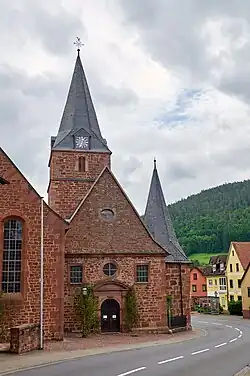 Der Gebäudekomplex besteht aus zwei parallelen Langhäusern, die durch rundbogige Arkaden miteinander verbunden sind. Das alte, kleinere Langhaus gehört zu einer 1473/74 gebauten Saalkirche mit einem Chorturm im Osten auf quadratischem Grundriss, der später mit einem vierten Geschoss zur Unterbringung des Glockenstuhls aufgestockt und mit einem achtseitigen, schiefergedeckten Knickhelm bedeckt wurde, der in den vier Dachgauben die Zifferblätter der Turmuhr enthält. Im Norden wurde 1931 ein neues, größeres Langhaus mit einem eingezogenen, halbrund geschlossenen Chor im Osten errichtet. An der Südseite des kleineren Langhauses wurde 1521 eine Kapelle angebaut, die innen von einem Netzgewölbe überspannt wird. In ihr steht ein um 1680 von Zacharias Juncker dem Jüngeren gestalteter Altar mit einem Gnadenbild (Muttergottes auf dem Holderstock). Der Hochaltar wurde um 1635 von Zacharias Juncker dem Älteren gebaut. Im neuen Chor befindet sich eine hölzerne Statue des heiligen Urbanus vom Ende des 14. Jahrhunderts.
