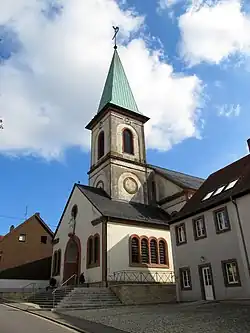 Im Jahr 1729 wurde der Vorgängerbau der heutigen Kirche errichtet, der in der ersten Hälfte des 19. Jahrhunderts zu klein für die Pfarrgemeinde wurde. In den Jahren 1843–44 erfolgte der Bau einer neuen Kirche, nach Plänen des Architekten Kreisbaumeister Leonhard (St. Wendel). Für die Ausführung der Pläne zeichnete Zimmermeister Jost (Saarbrücken) verantwortlich.