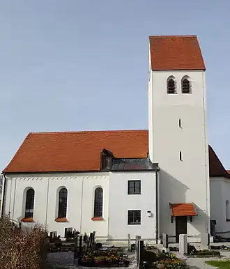 - ↑ a b Max Gruber, Klaus Kraft, Michael Meier, Wilhelm Neu (Bearbeiter): Westlicher Umkreis (= Die Kunst- und Kulturdenkmäler in der Region München. Band 1). Deutscher Kunstverlag, München/Berlin 1977, DNB 770396186, S. 211 (Die Angabe des Patroziniums mit „Mariae Geburt“ mag auf Verwechslung mit dem benachbarten Alling zurückgehen.).