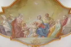 Über der Orgelempore ist die Geburt Marias dargestellt und an der Decke der unteren Empore die Heilige Sippe und die Jahreszahl MDCCLXIX (1769). Das Deckenbild im südlichen Vorzeichen stellt die Anbetung der Hirten dar und trägt die Signatur: Joh. Enderle p. (Johann Enderle malte es).
