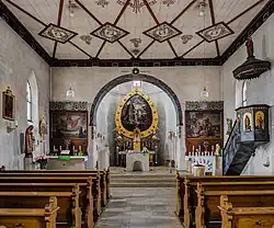 Die Doppelkirche setzt sich aus einem alten Teil von 1853 und einem neuen Teil von 1924 zusammen.