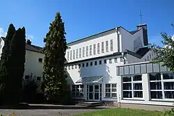 Die Kirche liegt am Nordufer der Lahn. Sie ist als rechteckiges Langhaus mit niedrigen Seitenschiffen und einem hohen Chor konstruiert. An der Außenseite der Ostwand ist eine asymmetrische Giebelwand, die mit einem Turmaufsatz mit Kreuz gekrönt ist. Im Turmaufsatz befinden sich zwei Glocken. Ebenfalls in der Ostwand befindet sich der Eingang mit den Worten: „Sieg Christi am Kreuz über den Tod“ und einer Kreuzesdarstellung am linken Türflügel. In der Kirche sind große, farblose Fenster, und an der Altarwand hängt ein Holzkreuz. Rechts vom Altar sind die Sakramentsschränke. An der Ostwand steht die Orgel.