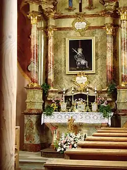 Im Innenraum befindet sich eine Deckenmalerei von 1762, auf der Judith und Holofernes dargestellt sind. 1696 wurde der von Lorenz Luidl gestaltete Hochaltar aufgestellt, der von den Skulpturen des Antonius von Padua und des Leonhard von Limoges flankiert wird.