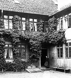 Der Gebäudekomplex, zu dem auch die Kapelle gehörte, lag, obwohl in der Innenstadt und nahe dem Dom und dem Kohlmarkt befindlich, dennoch „abgelegen“ und schien fast unzugänglich. Selbst geborenen Braunschweigern war der Ort so gut wie unbekannt, weil er so verborgen lag. Hinter schmucklosen alten Fachwerkhäusern, niedrigen Ställen, alten Speichern, Schuppen und Wagenremisen befanden sich Kapelle, Wohn- und Wirtschaftsgebäude am Ende einer schmalen, krummen, kopfsteingepflasterten Sackgasse.[21]