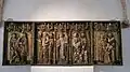 St.-Annen-Museum | Doppelflügelaltar mit einem Paar festen Standflügeln sowie Predella (Mittelschrein 238,5 × 134,5 × 30 cm; Flügel 238,5 × 67 × 22 cm; Standflügel 256 × 67 cm); im Mittelschrein die Gregorsmesse, in den Seitenflügeln alttestamentarische Szenen, die sich auf die Eucharistie bezogen wurden. Auftragsarbeit der aus Lübecker Patriziern bestehenden Heiligen Leichnamsbruderschaft im Wert von 451 Mark lübisch.[17] | |