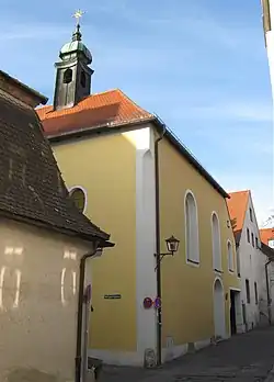 Ein Vorgängerbau ist vermutlich die im 13. Jahrhundert erwähnte Kapelle in honorem Sct. Spiritus, die wie die Maria-Schnee-Kapelle im Bereich der Heiliggeistgasse in der östlichen Altstadt Regensburgs lag.[1]