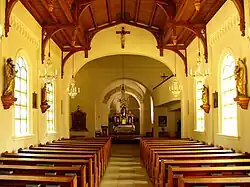 Die Filialkirche Maria Fieberbründl als Wallfahrtskirche Mariä Geburt war anfangs eine Holzkapelle. Im Jahr 1879 wurde diese durch einen steinernen Bau von L. Minkovitsch ersetzt. In den Jahren 1893/94 wurde eine Bethalle im Stil der Neuromanik nach den Plänen von H. Lötz errichtet, die im Jahr 1954 durch ein Querschiff mit der Kapelle verbunden wurde. Im Jahr 1994 wurde eine neue Orgel mit 17 Registern von Rieger Orgelbau eingebaut. Die Inneneinrichtung aus historisierenden Formen umfasst unter anderem einige Votivbilder nach Gebetserhörungen. Über dem rechten Seiteneingang befindet sich eine lebensgroße Schutzmantelmadonna aus Sandstein von Josef Papst (1953). Die Malereien der Bründlkapelle sind von Franz Weiss (1978).[2] Jährlich besuchen zirka 50.000 Wallfahrer den Wallfahrtsort.